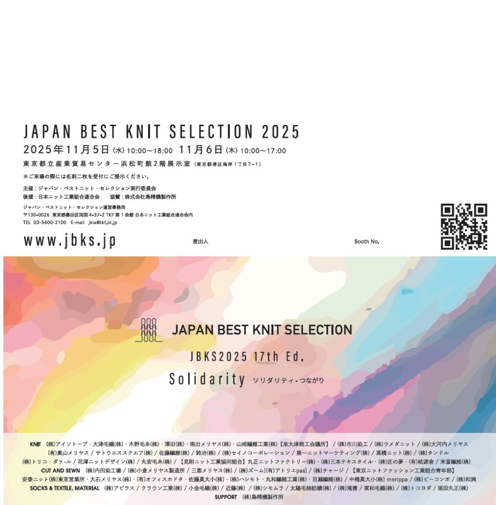 2025年11月5日・6日、浜松町の東京都立産業貿易センターで開催されたJapan Best Knit Selection 2025 に出展しました。
